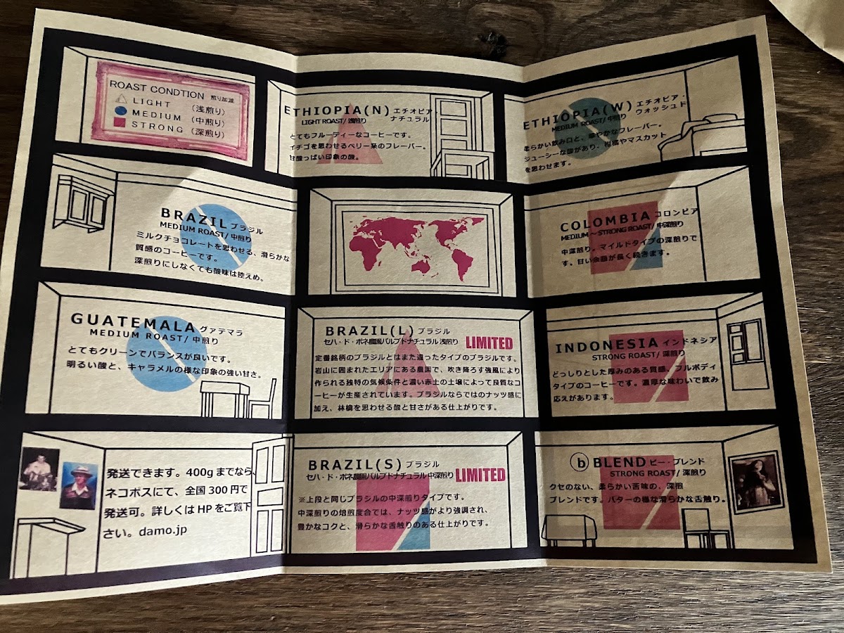 Welcome to damo kaffee haus, a quaint coffee haven nestled in the heart of Miyagi, Sendai. This charming café offers a variety of beverages that cater to discerning coffee enthusiasts. The menu highlights include a range of rich roast options, particularly appealing to dark roast lovers, as noted by satisfied customers. The drip coffee, praised for its flavorful profile with fruity undertones, promises a refreshing experience for those on the go.
